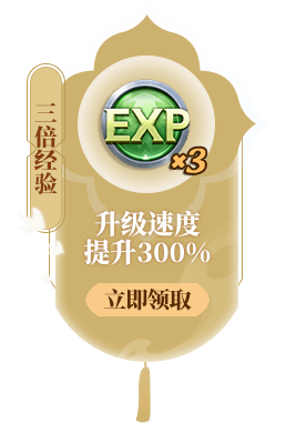 所有角色可领取3倍经验buff,80级以下持续有效,升级速度提升300%!